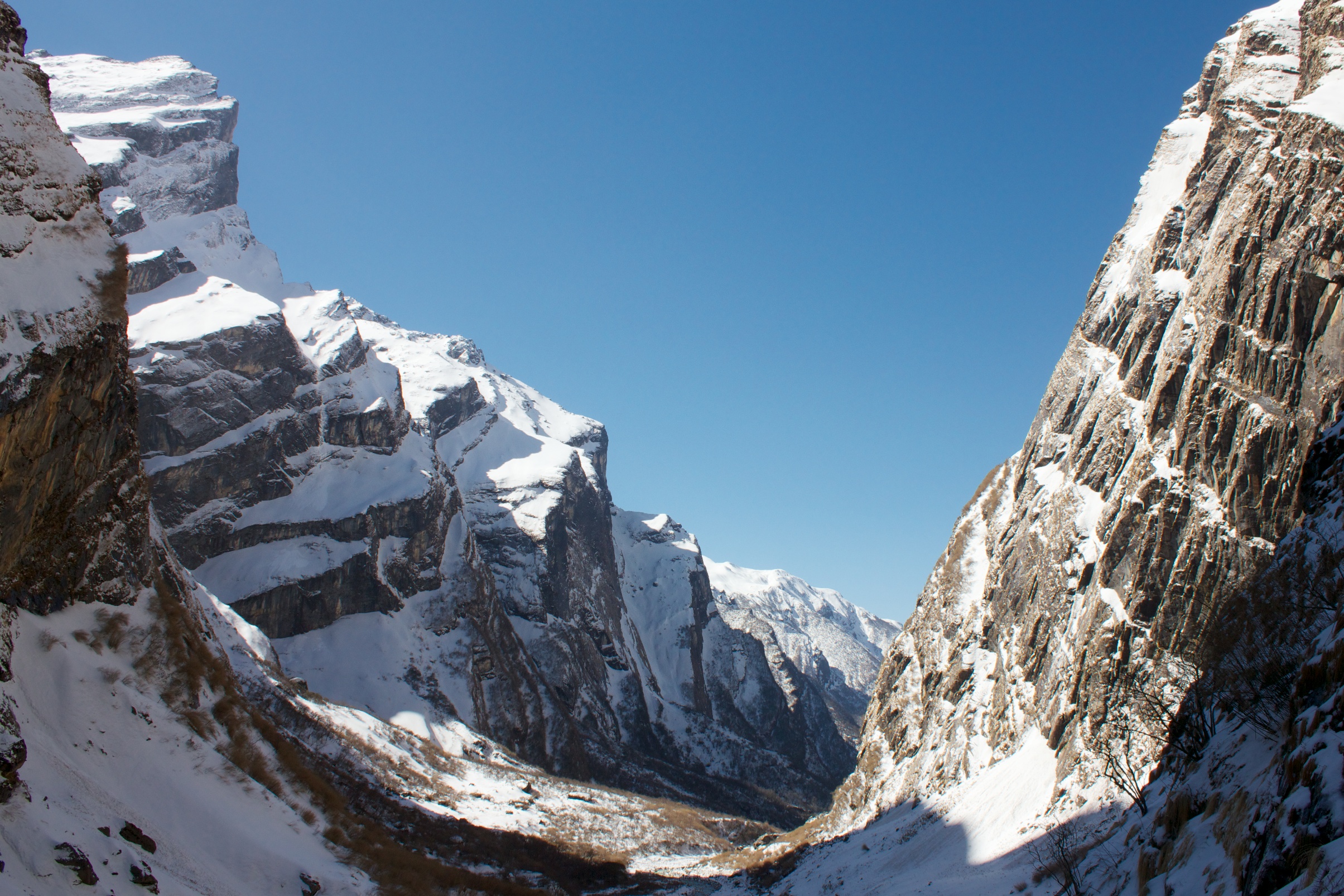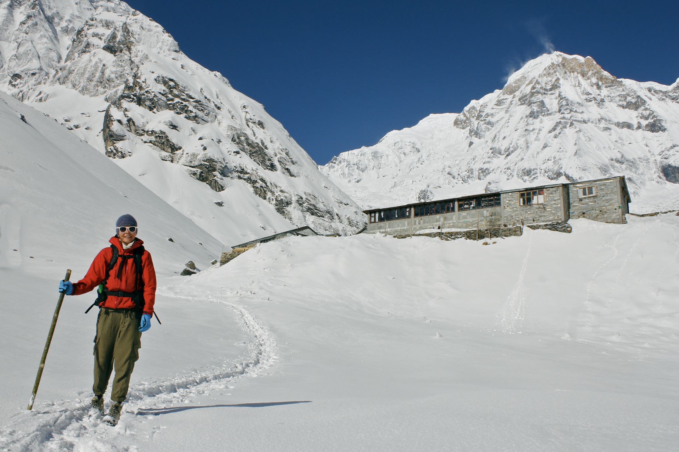 A steady afternoon of descending brings us back to Bamboo and leaves us with a decision… Thanks to an outdated Lonely Planet and the dramatically rising cost of food and accommodation near ABC, we are running low on funds and may not have enough to enjoy the rest of our journey. Not wanting to have to alter our plans, I managed to barter my winter boots for tonights’ room and board for us AND Miriam. Let us make a deal, my friend! This saves us enough cash to be able to finish our trip in style and we plan on heading west towards to the ever-popular Poon Hill.