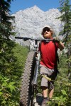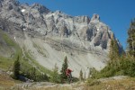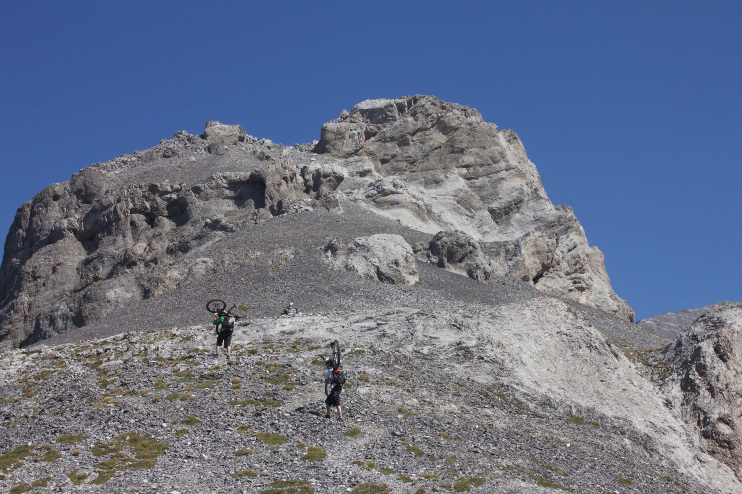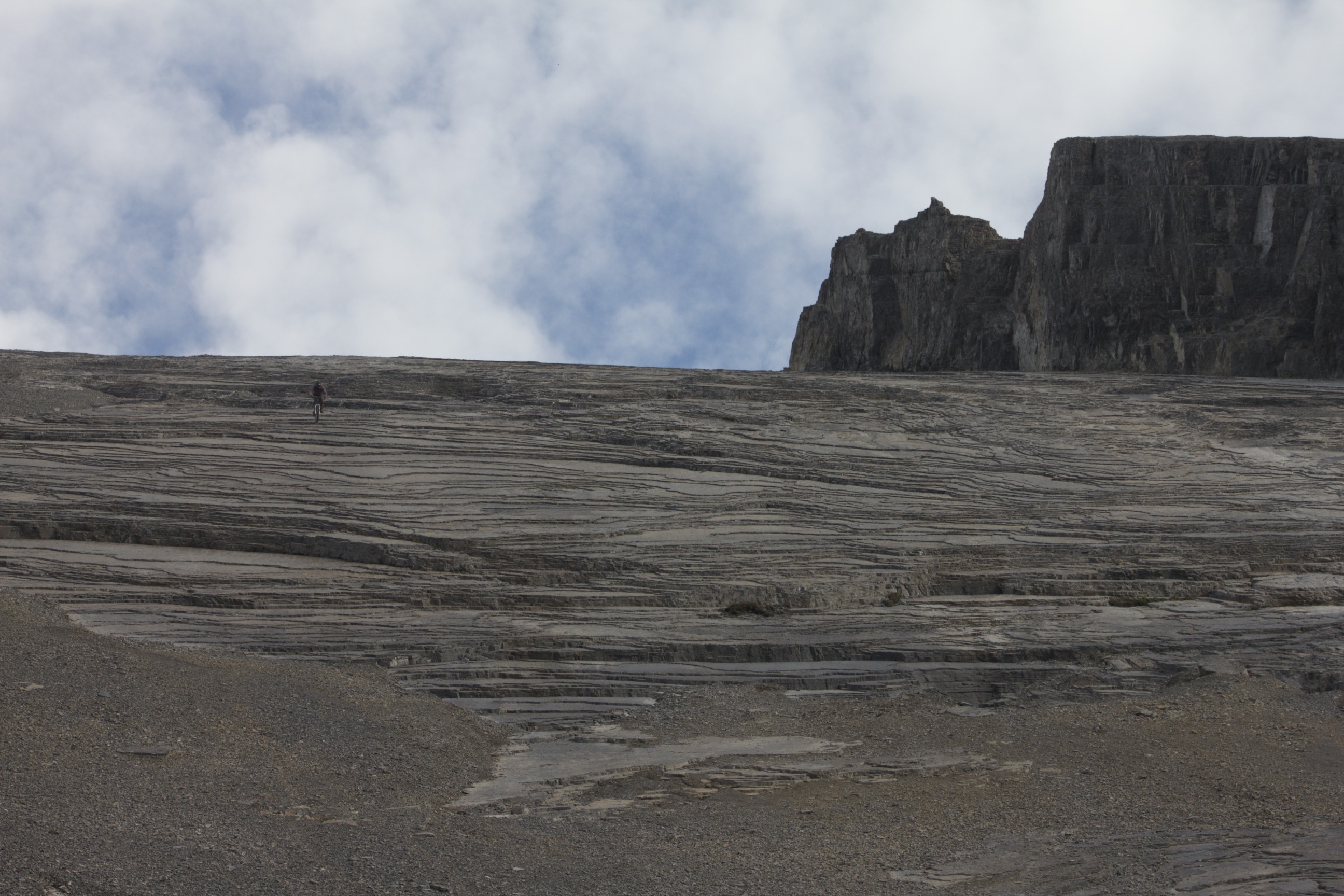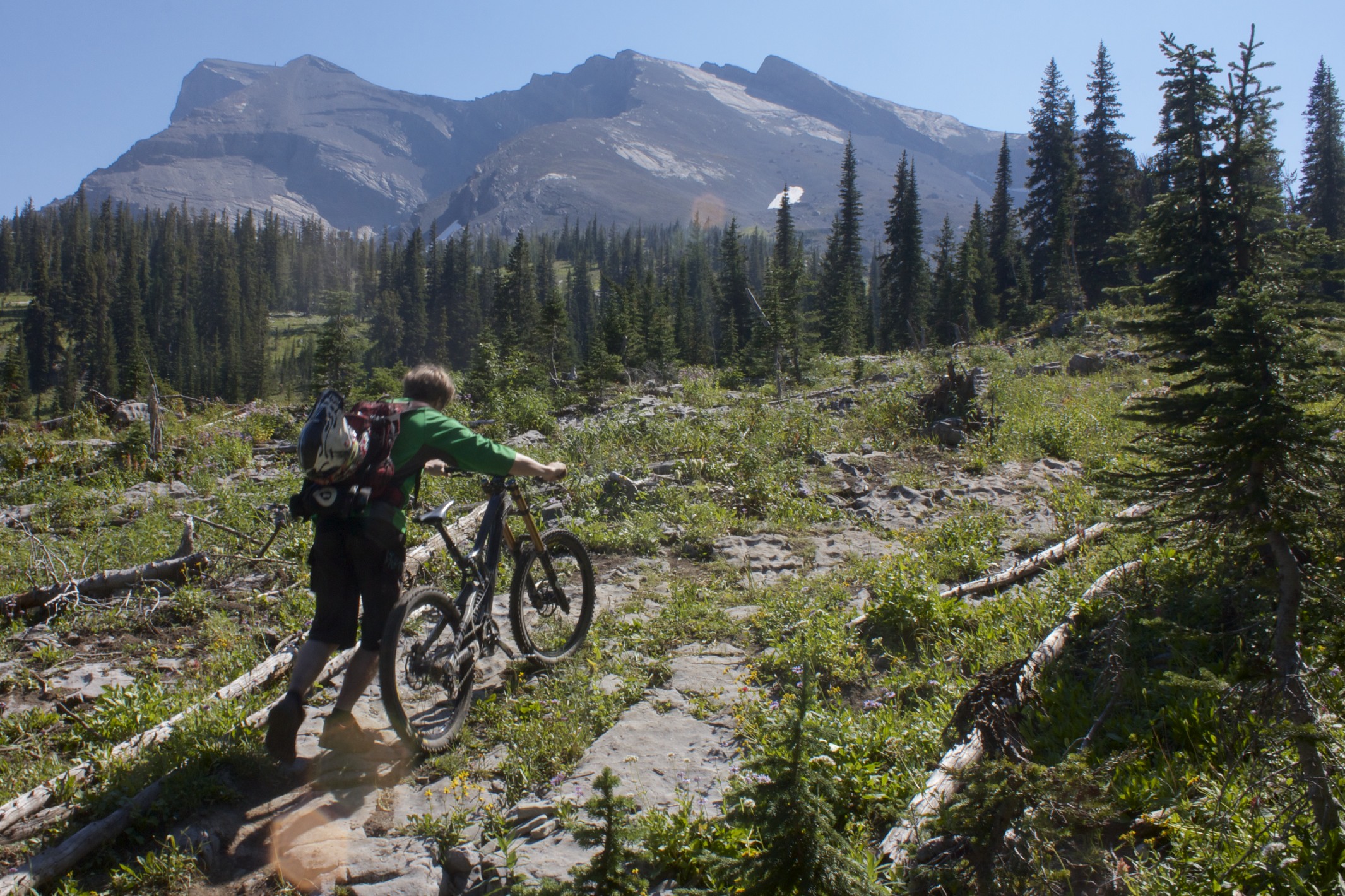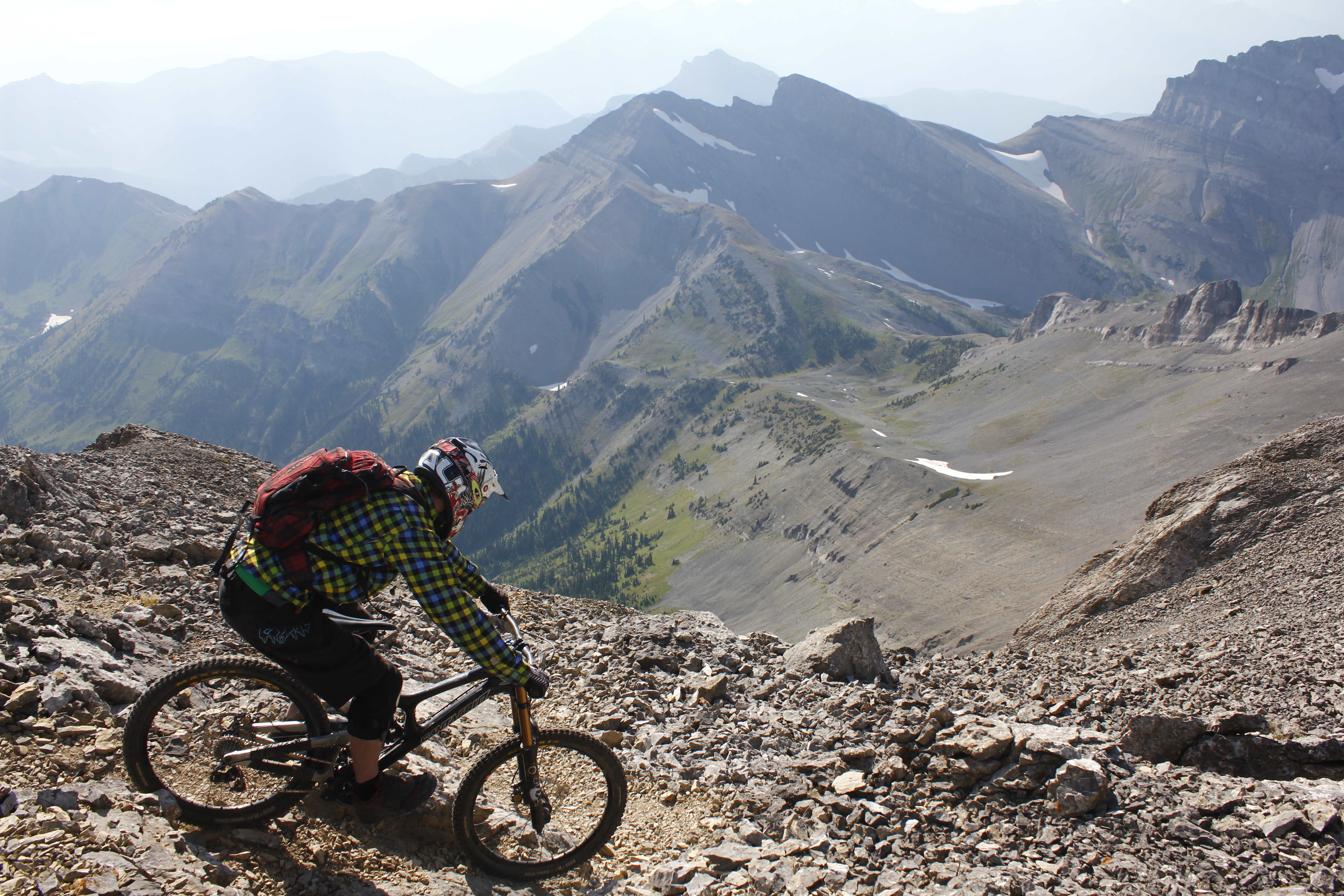 With a wagon full of adventure gear and gasoline I left early for Fernie. Before long I was devouring Keremeos peaches faster than kilometers and was eager to stretch my legs. After a botched attempt to meet friends in Rossland, I pulled the bike out and headed out for a quick evening session on 7 summits. I was back on the road at dawn the next morning and had learned that Luke was arranging a session on the MEGASLAB. I’d heard weird rumors and seen photos that defied my imagination – could I really push my bike up the highest peak above Fernie and ride down 400m of steep, slabby limestone? Turns out, the answer is yes, and it was one of the scariest and most fun things I’ve done on a bike.