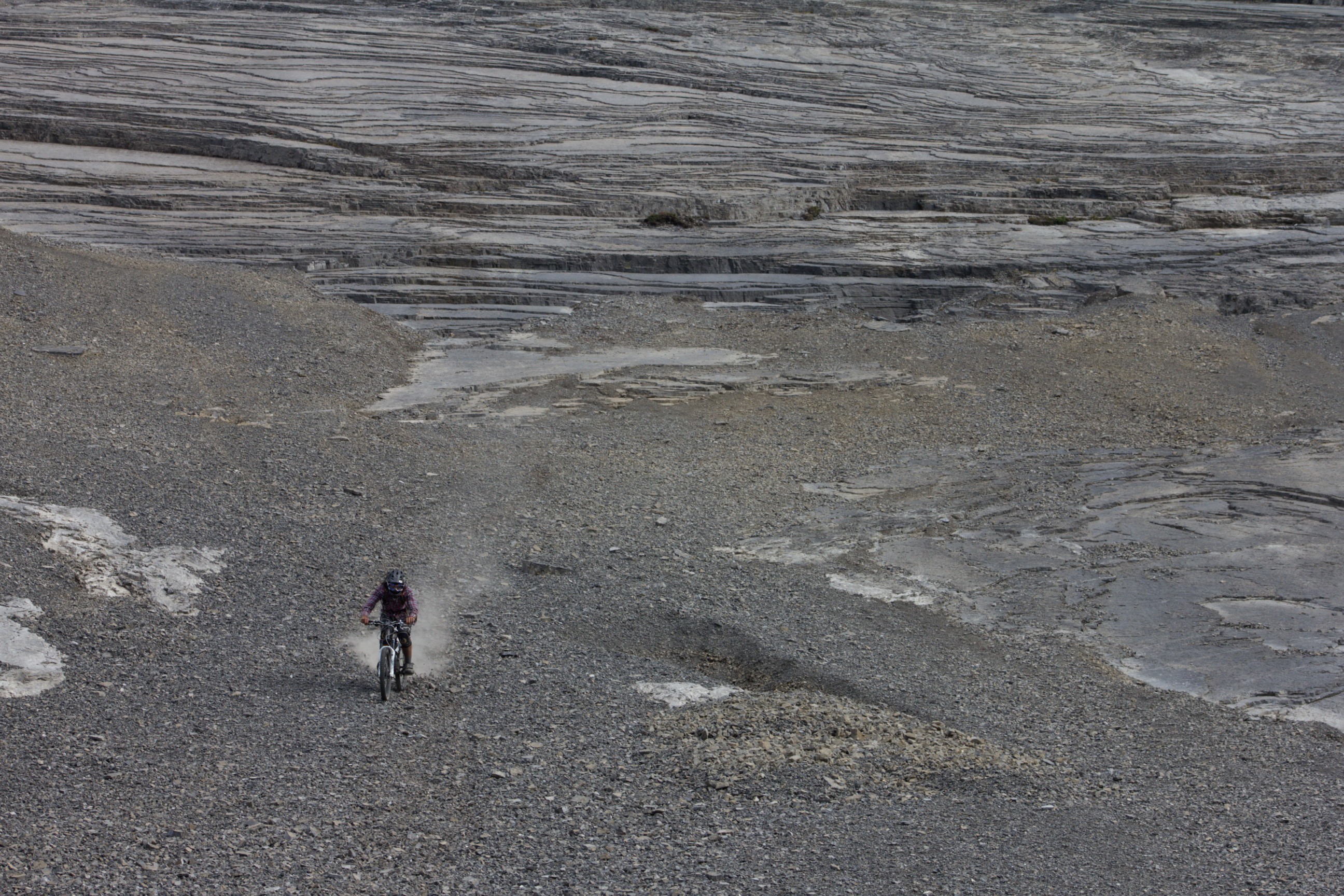 This has been an amazing summer for mountain bikaneering, with consistent warm and dry days turning into months. In fact, it’s gone so far that some of the trails are in dire need of rain to wash out some of the dust. The other way to manage dust is to search out clean, slabby rockfaces and ride your bike down them.