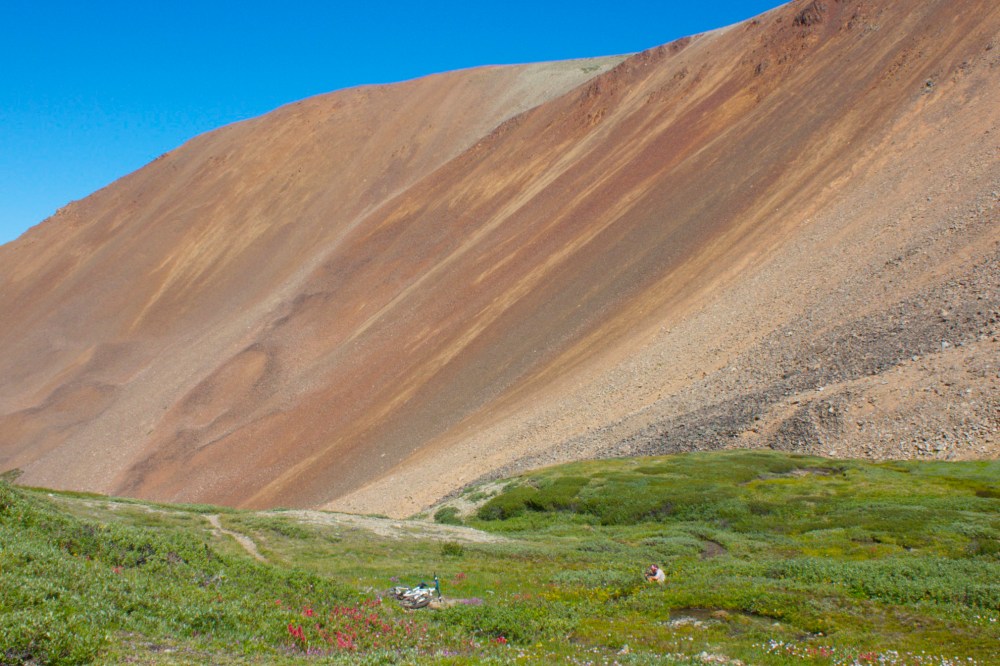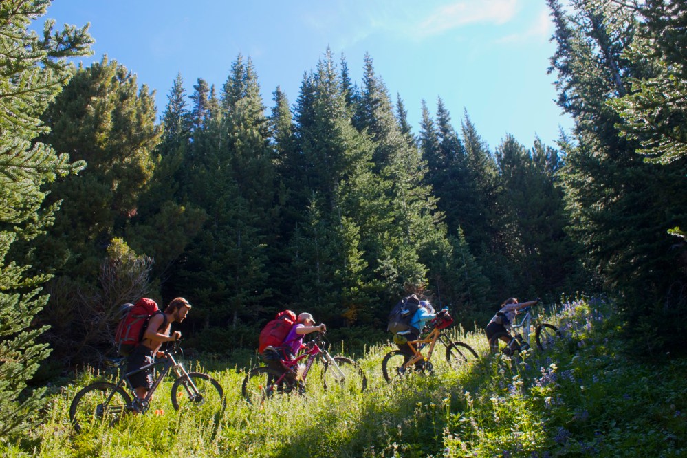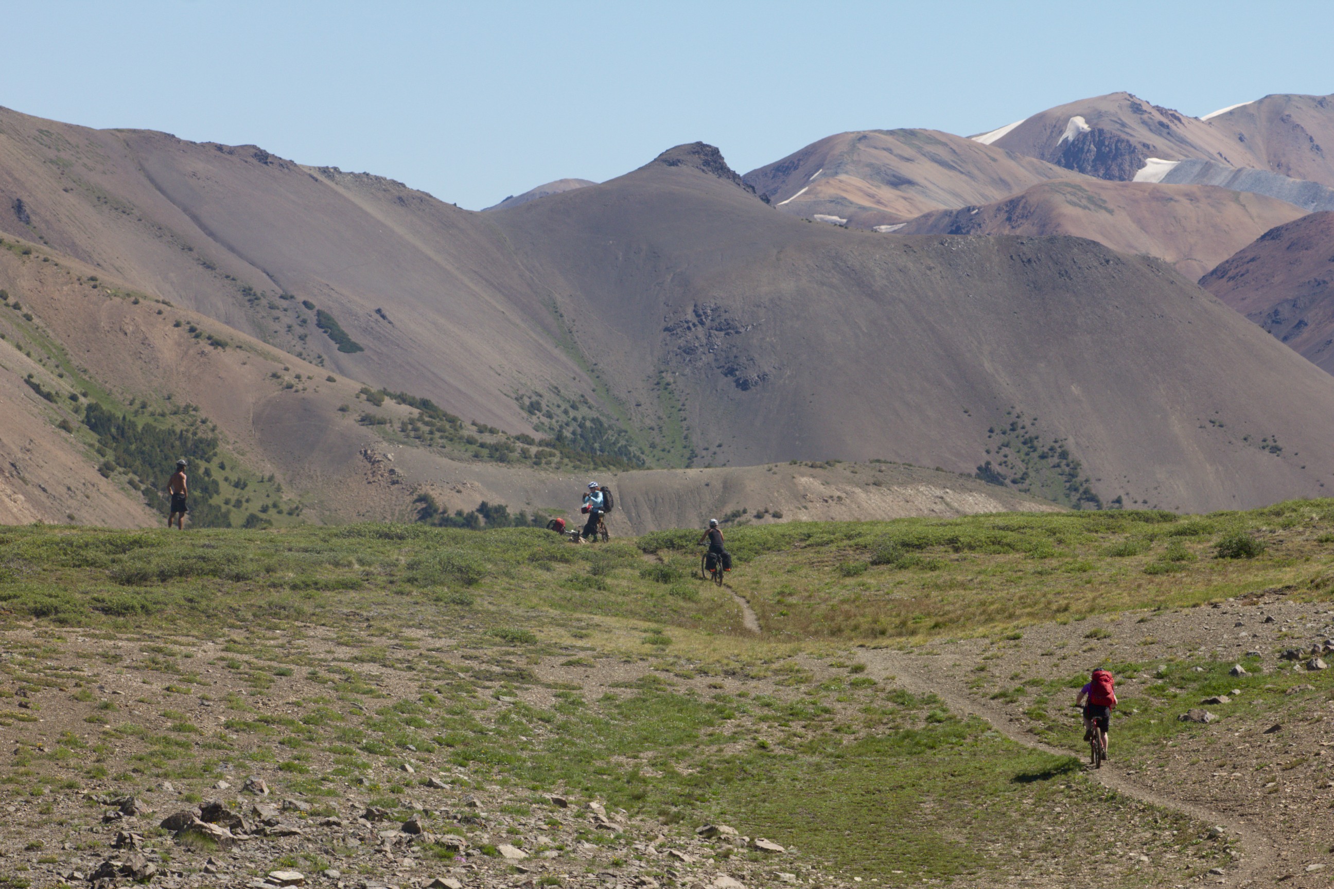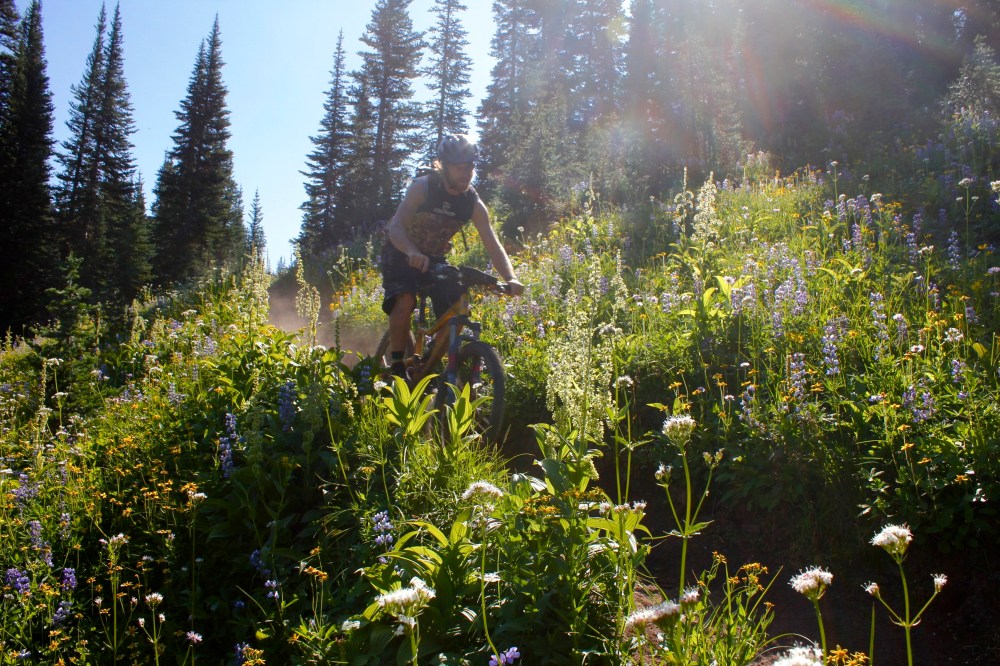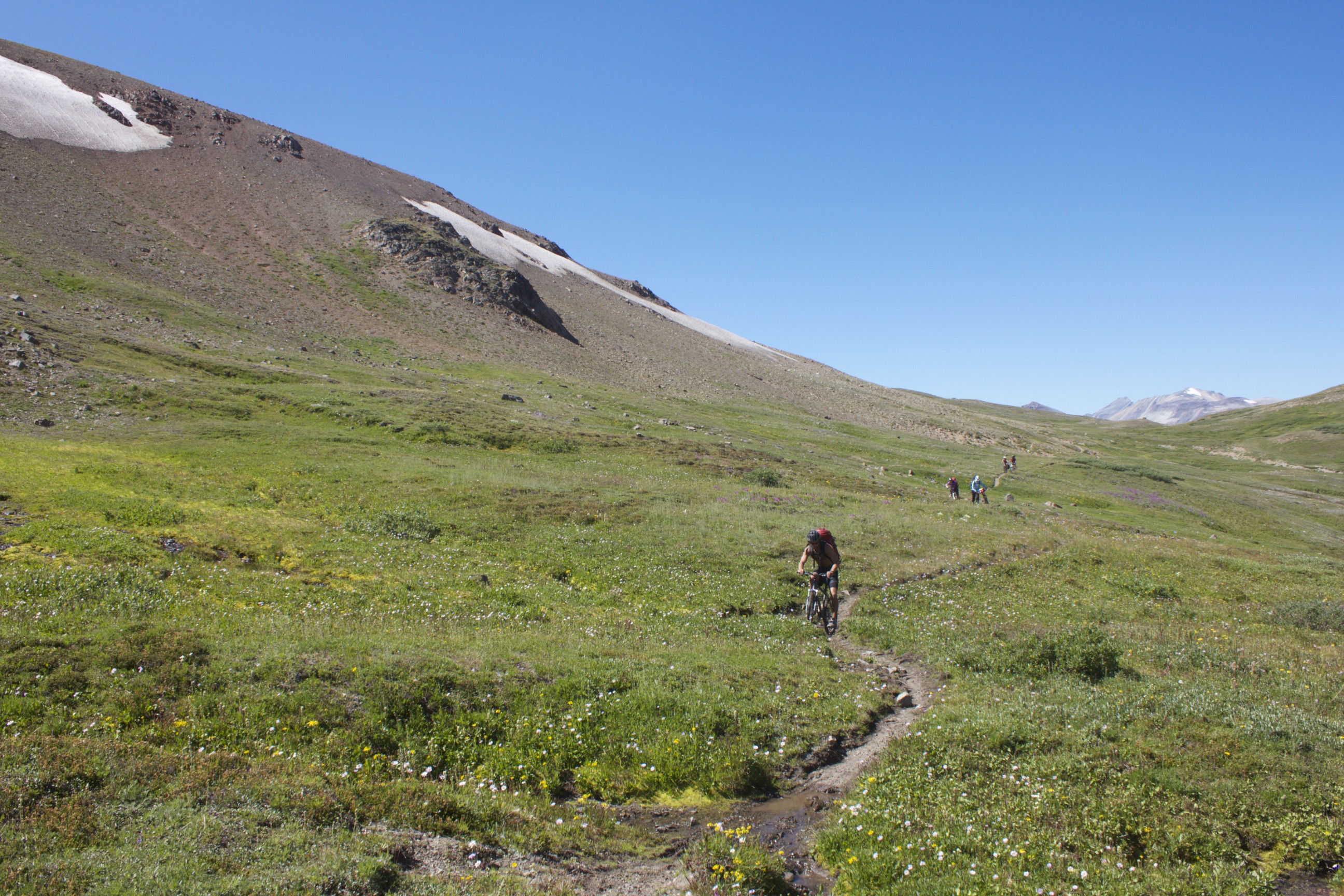 Our last frigid morning slowly receded down the valley as the sun rose until it finally hit our gear and breakfast area, thawing us all and giving us energy for the final push back to Tyax Lodge. The day promised to be long, but we had it on good authority that the Lick Creek trail was awesome and that wildflowers would be in full bloom. Fortunately, the sun also gave us energy to get back int he saddle and set us on our way.