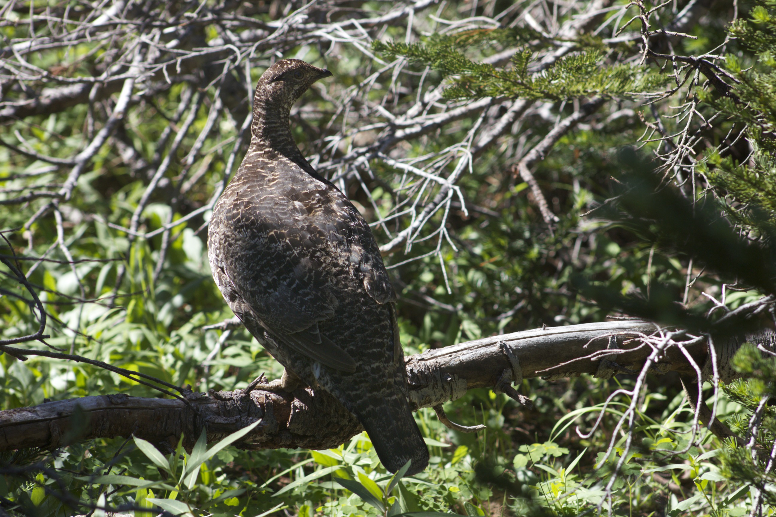 Ruffed Grouse (Bonasa umbellus) trying to hide
