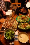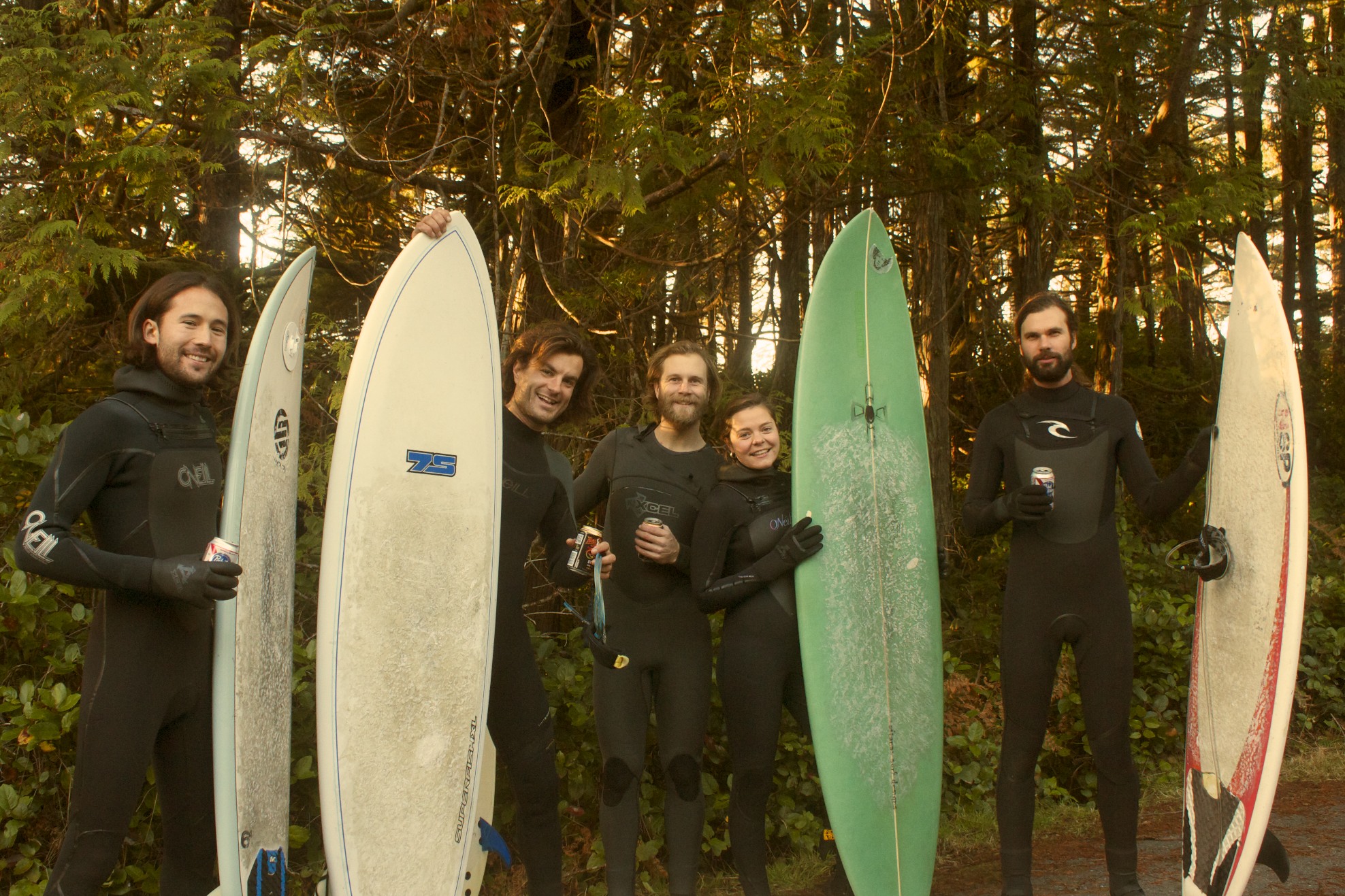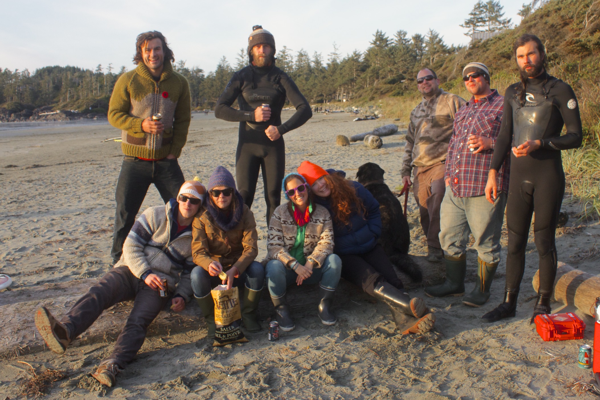 Friday morning, after packing and picking up Shawn from the ferry, we bought $200 worth of delicious Gabriola Island steak and more booze before setting off to try and surf the remnants of an elusive long period swell. We arrived at Wick Beach about the same time as Scot and Julian, and managed to score an epic sunset surf! The stoke was high and the photos were amazing!! We knew that a huge meal needed prep and that perhaps up to a dozen more people were showing up – Emily rented a kind of duplex that sleeps 18 – so we hightailed it down to Ucluelet and helped with the feast. This meal would prove instrumental to our survival, as we topped the night off with a rowdy night of karaoke at Officials, the local sports pub. Highlights are blurry, but I’m pretty sure that Julian’s rendition of Need You Tonight by INXS is what actually caused them to split up this week. There’s no point in them even trying to compete against him and little Jules. (Disclaimer – Little Jules never even left the truck)