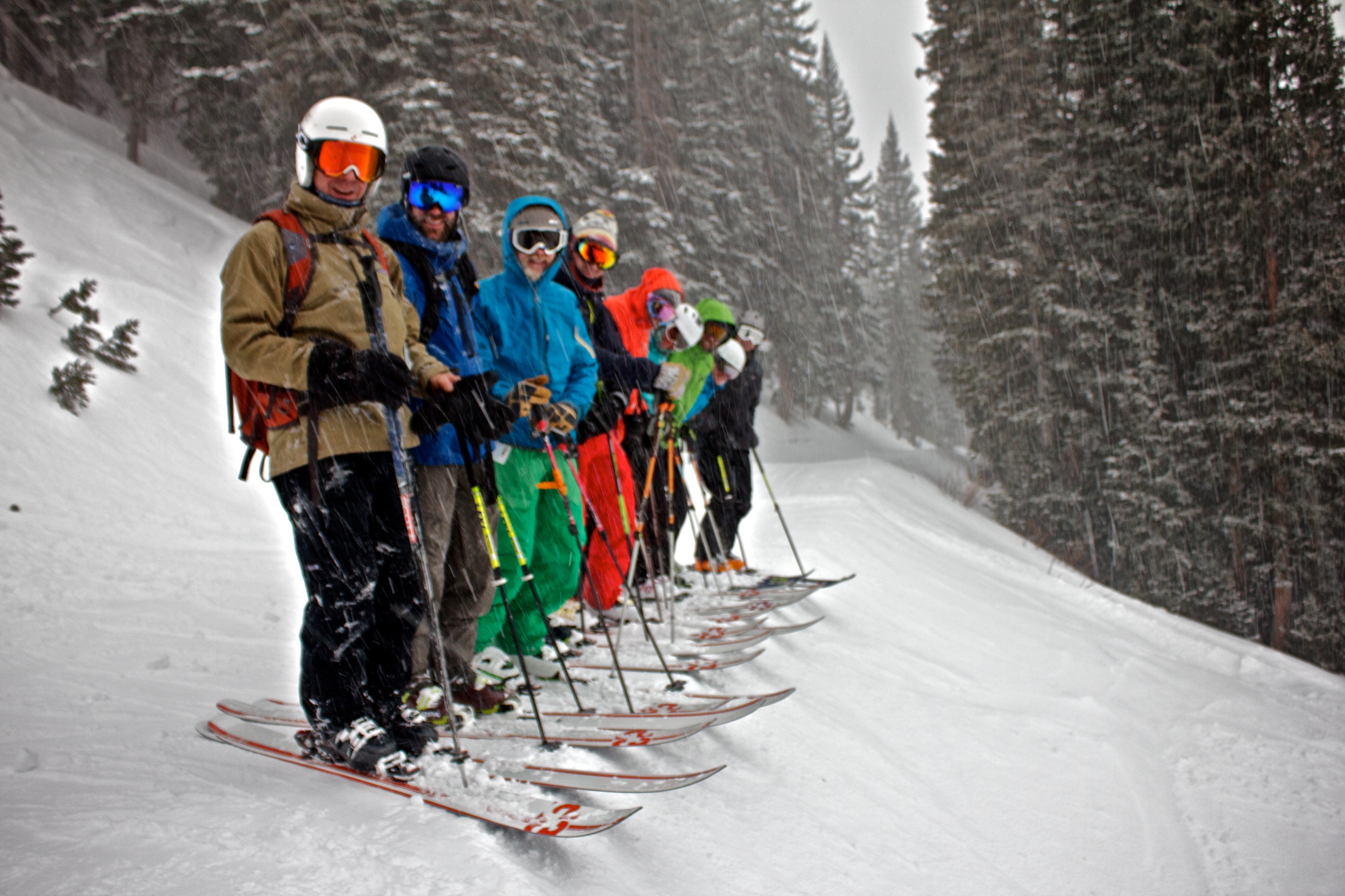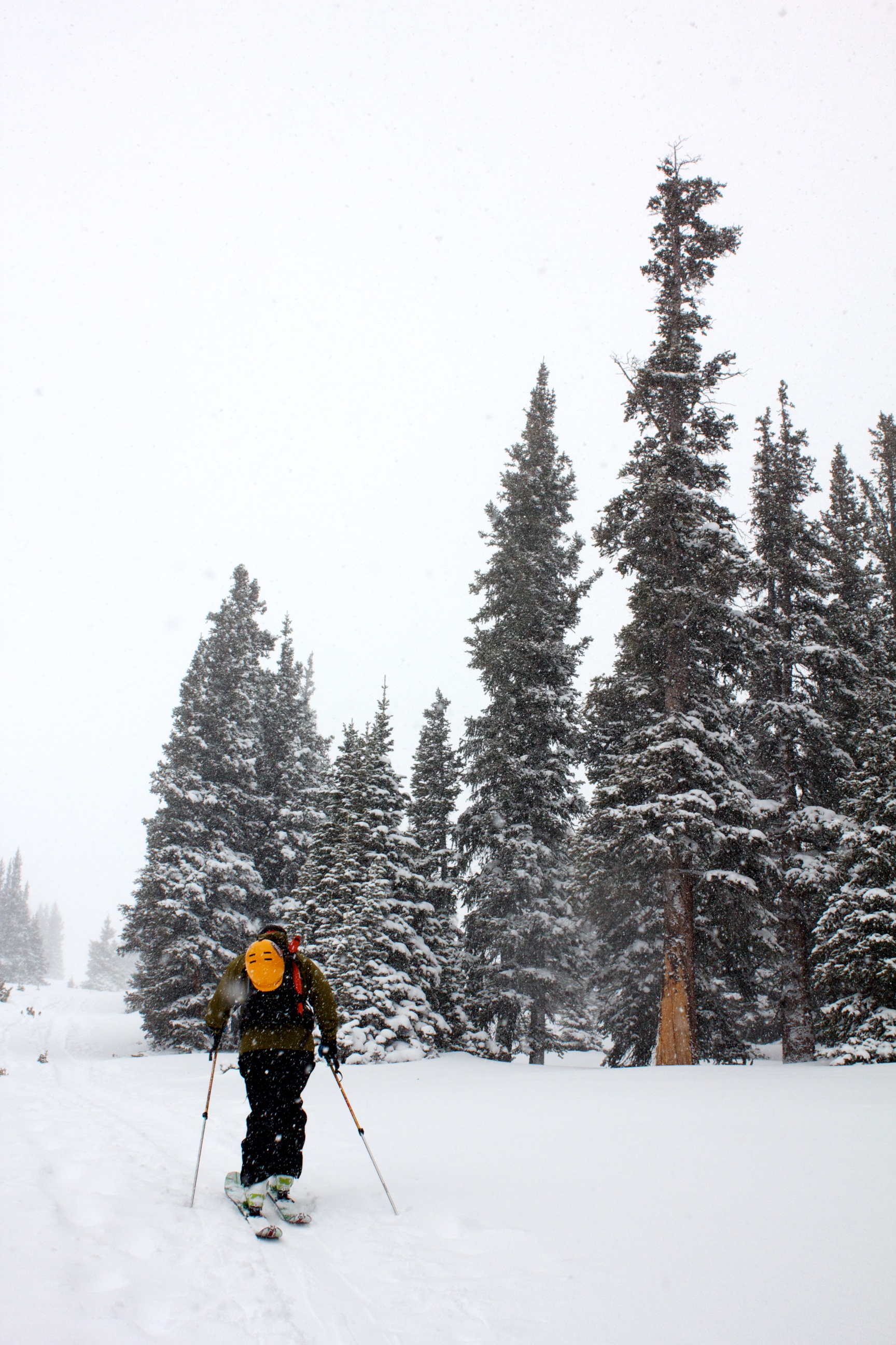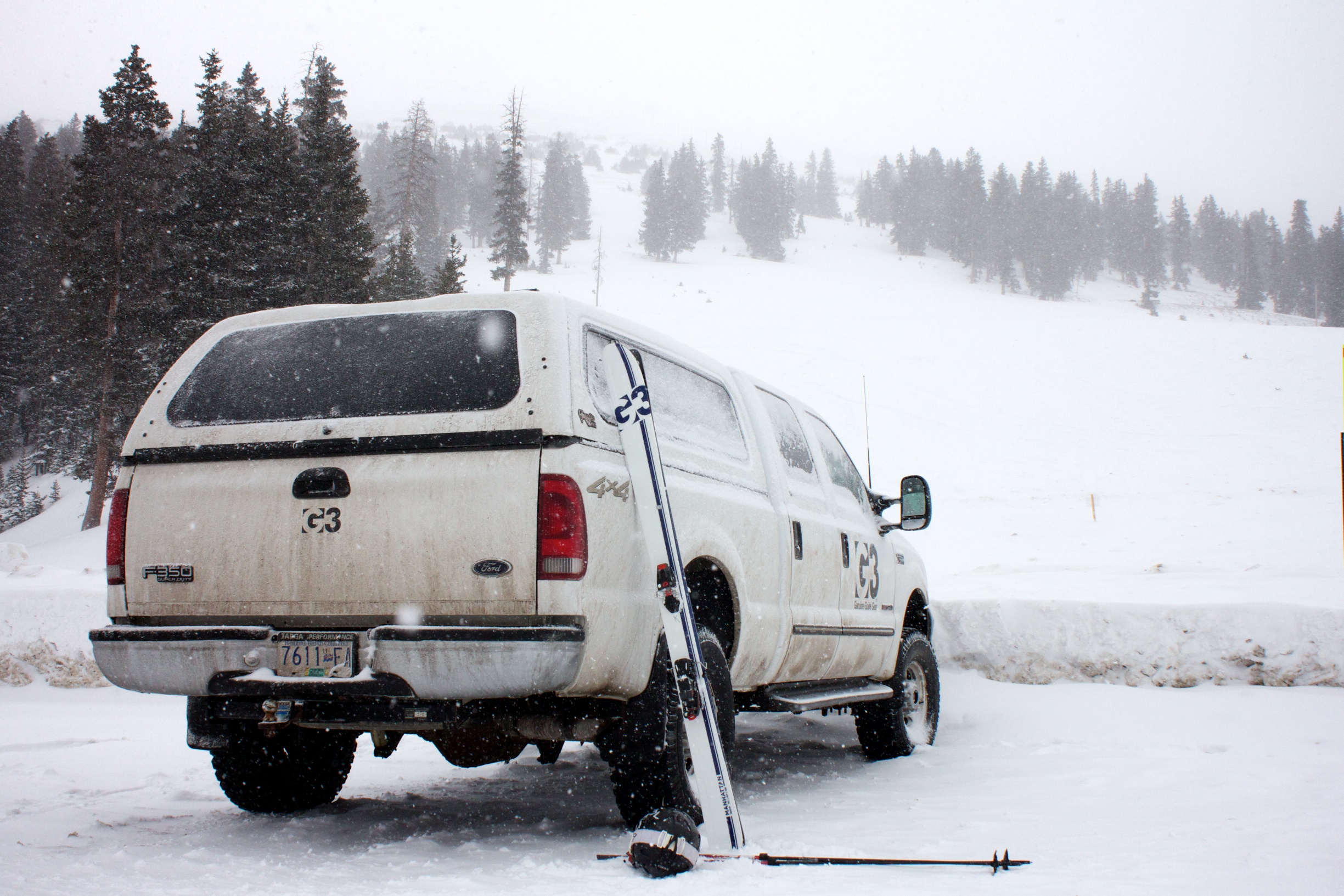 …we arrived in a ColoRADo wonderland of summer in the city and winter in the mountains. I had the privilege (??) of not really being needed at the tradeshow booth, so I took the fortuitous opportunity to truck a pile of skis up to a raging storm in some local high mountain passes.