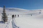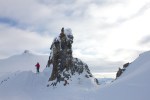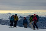 We winded our way up beneath the Overlord and started our trek up to the Whirlwind-Fissile col, from where we intended to climb up Fissile’s south spine. The steep ridge was wind-blown and icy, and when we finally made the south summit our hopes plummeted. The knife-ridge towards the true summit was guarded by alternating north-south cornices, courtesy of the recent arctic outflow weather change. We had the right gear to cautiously navigate the ridge, but the short January day didn’t leave us with the time. Begrudgingly, we navigated back down to the col and had a great powder run down Whirlwind back to the hut, where we packed our gear and began the slog back out the valley. As we climbed back up to Cowboy Ridge, we were blessed with another awesome sunset and as the final rays of the trip disappeared behind the tusk we dropped down towards the ever-exciting Singing Pass Trail. All in all, a fantastic weekend of old friends, good food and fresh powder, spiced up with beautiful bluebird days, epic sunsets and more training, confidence and respect in the mountains. Cheers!