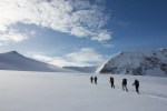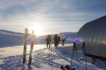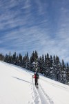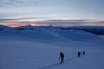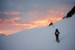 Back in January I got together with some friends (including an ACMG guide) and went out into the Whistler backcountry to brush up on some glacier travel, rope work and steep skiing techniques. Saturday morning cracked with beautiful blue skies and a gondola ride to the top of Whistler to give us a running start towards our goal for the night – the notoriously frigid Russet Lake Hut. Our packs were heavily weighed down with fresh food, excessive clothing and delicious beer, so the short ski shots we had through the Musical Bumps were more survival than stylish – a scene that would be played out again over the next days. After some route finding exercises led by Dave we slid into the vacant hut as the sun was dropping to the horizon, hastily repacked for skiing and went out to try and get some turns in the fading light on the west shoulder of Fissile. Racing up the skin track to stay ahead of the rapidly ascending horizon line, we topped out and transitioned just in time to get some smooth turns down the face with the last rays of an epic Black Tusk sunset as a backdrop.