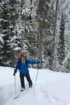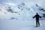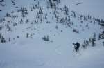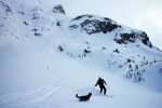 Once in Pemby, we met with delicious sausage rolls, coffee and Adam before heading up to an empty Joffre parking lot. Mere seconds behind us, Bret and Kris (and their awesome borrowed dog – Dallas) arrived and we set off for the upper lake. Despite our alpine start (leaving the lot at 10:30) we made it to the bottom of Slalok in good time and assessed options. We decided to try and sneak around behind the expansive main face and eventually worked our way up onto the west shoulder. Epic (and occasionally icy) powder awaits and we shredded through mini-chutes and powder fields back to the lake. By the time Z Scott dropped us back at Adam’s sisters’ awesome Pemby-powder-pad, I barely had the energy to eat, drink and pass out on the couch.