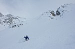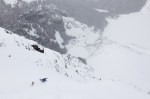 A prolonged week of cold, wet weather in the city was followed by clearing skies and mountains blanketed by light, dry pow. The Easter heat wave baked any slope under 1900m, but our goal was the 2650m glacier-cloaked monster known as Slalok. Z Scott picked me up way too early in the morning and the drive up to Pemberton promised abundant sun and perfect visibility. However, the weather was typically fickle and teased us with cycling sun and clouds dumping snow. Classic April in the mountains, summer in the valley and winter in the alpine.