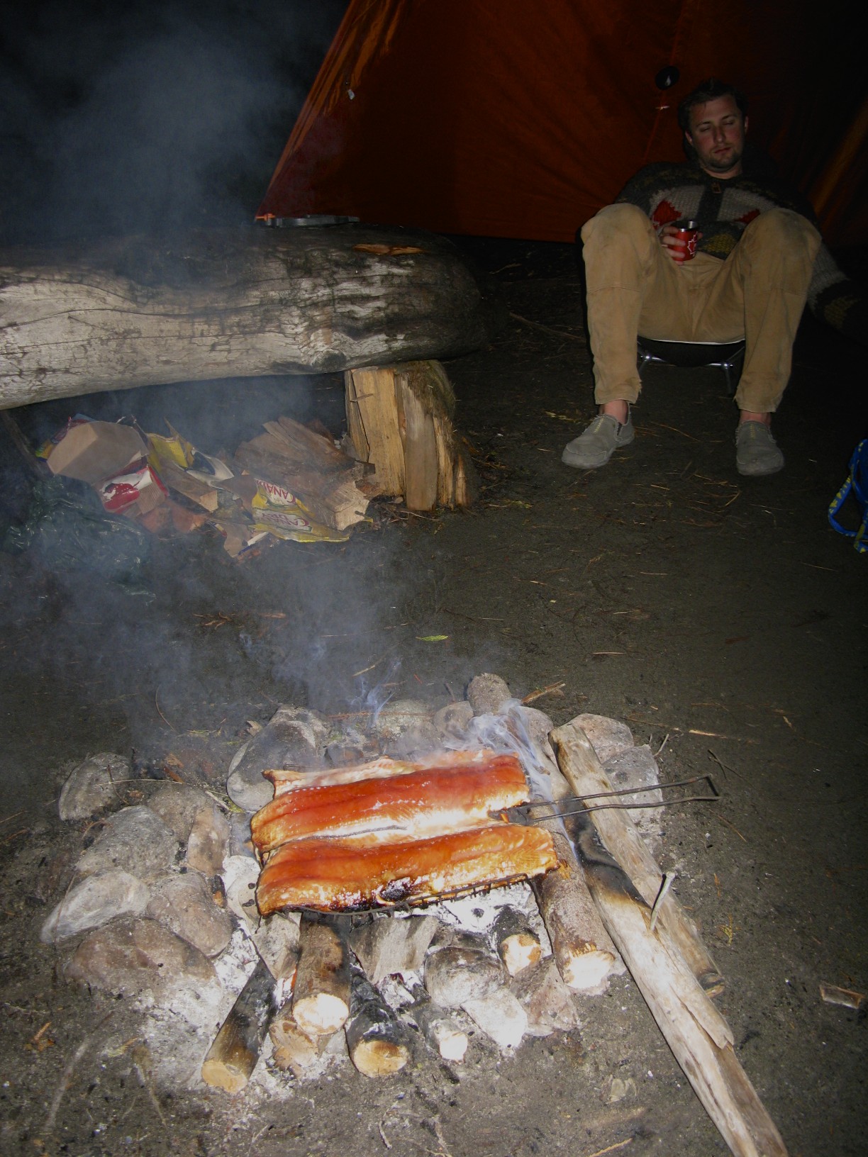 IMG_3047Photographic evidence that an open fire by the beach is the best way to cook salmon. Also, we were too lazy to soak cedar planks.