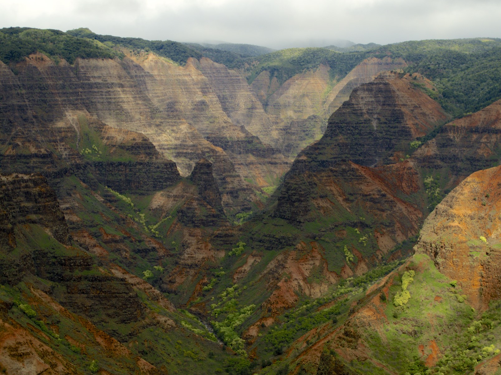 After the mutual exhaustion and elation of the hike, we arrived back to civilization and found everything rolling along pretty much as we had left it. The surf was still huge, and on the walk out we heard rumors of a massive pulse of swell that had big-wave surfers racing into town and charging out into the ocean on jetskis to meet the challenge. As it turns out, I left my jetski and big-wave board at home (full disclosure, I don’t have either of those things) so we decided to hop in the car and drive the coast to check out some new beaches and the Grand Canyon of the Pacific – Waimea Canyon. The term waimea means ‘reddish water’ and is an apt description of the canyon which cuts a vibrant red and green trench 16 km across the island that’s up to 900 m deep.